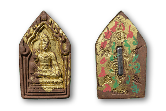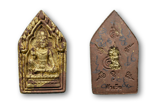 หน้า เนื้อมังคุดปิดทองในพิมพ์ หลัง ฝังปรกสุริยันเนื้อสัมฤทธิ์ สร้าง  8  องค์
