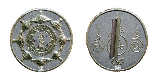 ด้านหน้าปิดทองเต็ม ด้านหลังฝังตะกรุดสาริกา