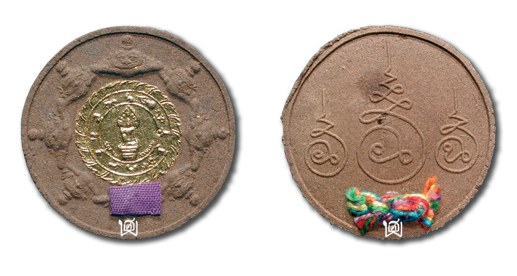 ด้านหน้าปิดทองปิดผ้าม่วง ด้านหลังติดสายสะดือพ่อ (แจกกรรมการ)
